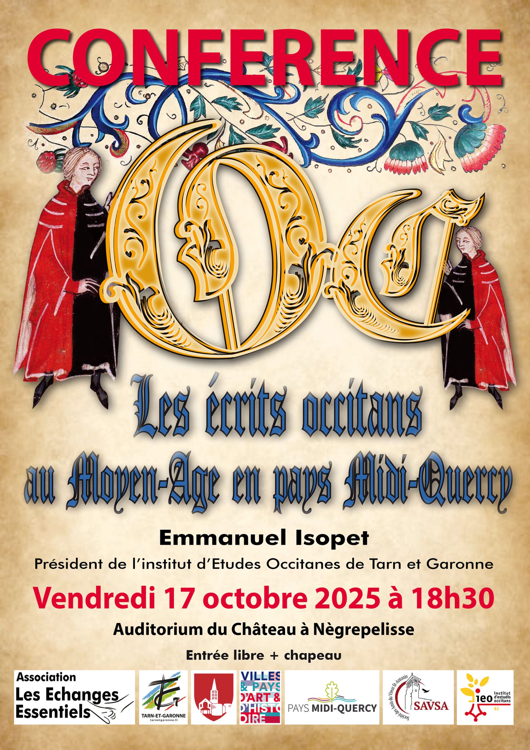 Venez explorer le riche patrimoine linguistique du Midi-Quercy à travers une présentation animée par Emmanuel Isopet, Président de l’Institut d’Études Occitanes de Tarn-et-Garonne. C’est une occasion unique de se plonger dans le Moyen Âge et de découvrir l’importance des écrits occitans.