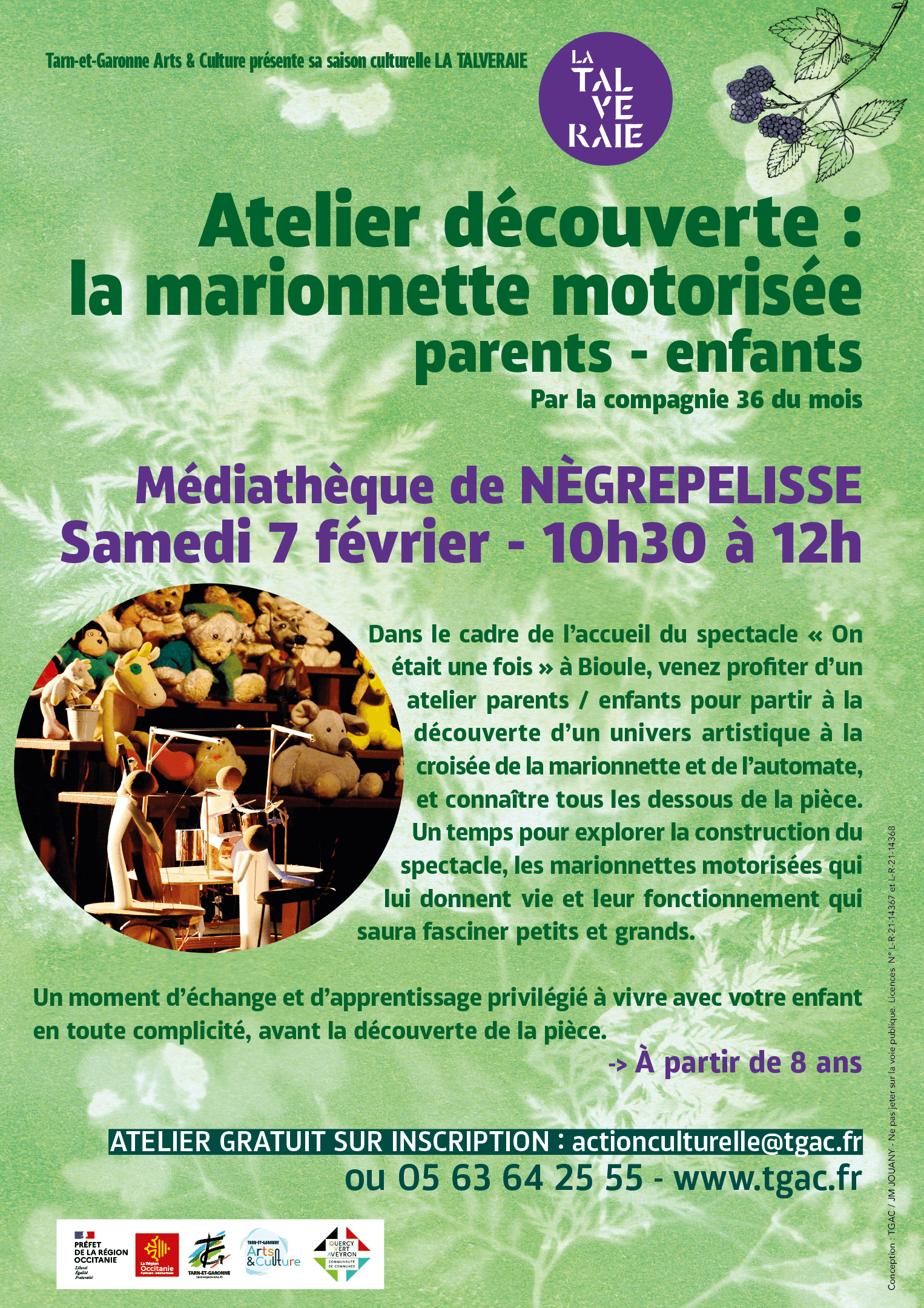Organisé par Tarn-et-Garonne Arts & Culture dans le cadre de la saison culturelle « La Talveraie », cet atelier fait écho au spectacle « On était une fois » présenté à Bioule. Loin d’être une simple démonstration, cette séance permettra aux participants de comprendre les « dessous » de la pièce : de la construction des personnages à leur mise en mouvement grâce à la motorisation.