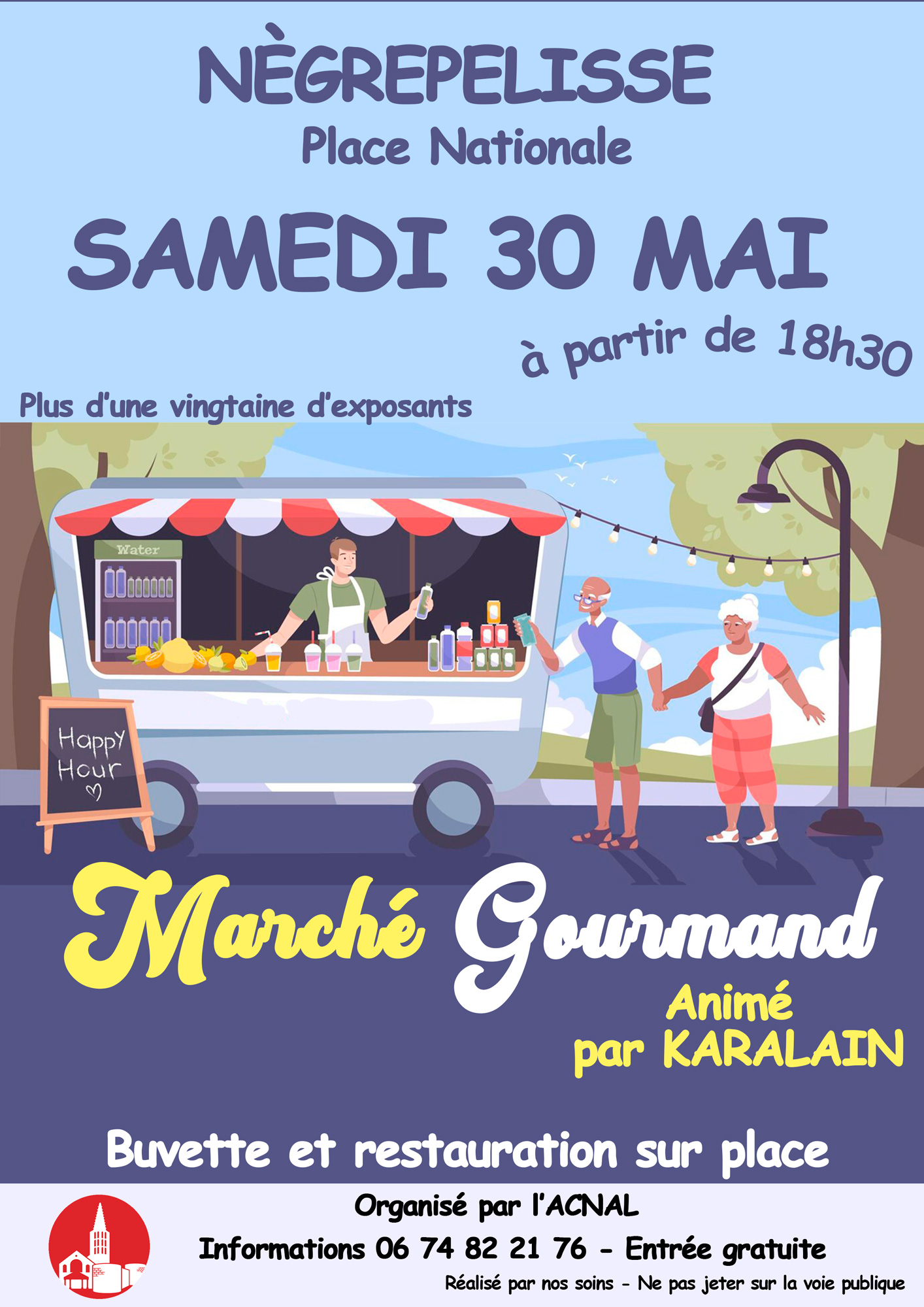 Le samedi 30 mai 2026, la ville de Nègrepelisse vous invite à une soirée placée sous le signe de la gastronomie et de la convivialité. Organisé par l’ACNAL, ce marché gourmand est le rendez-vous idéal pour partager un moment entre amis ou en famille au cœur de notre village.