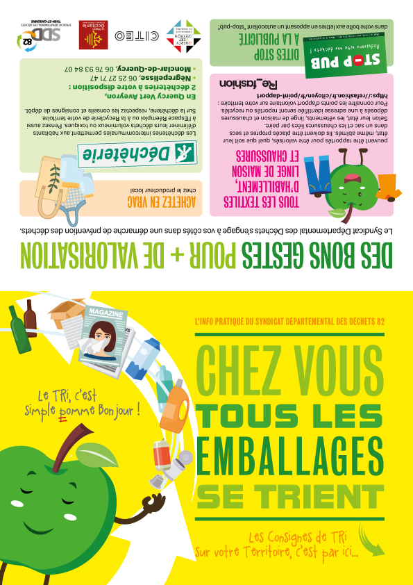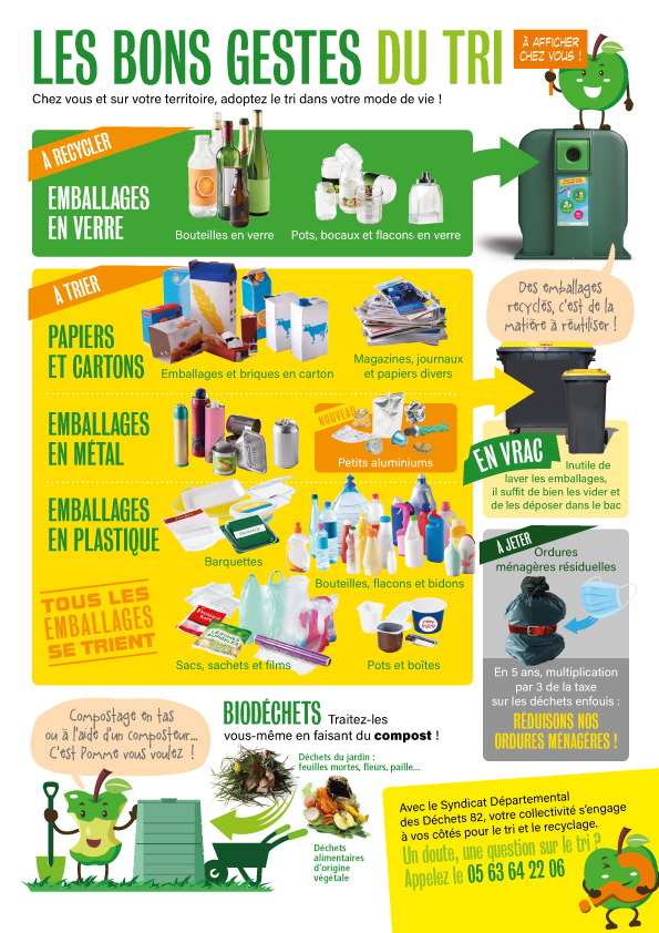 En tant que producteurs de déchets, les ménages doivent se conformer aux directives fournies par la collectivité responsable de la collecte des déchets ménagers (Service Public de gestion des déchets ménagers). La communauté de communes Quercy Aveyron diffuse des consignes de tri destinées à ses administrés. L’objectif de tous les acteurs concernés est de simplifier le tri d’ici 2025. Cela vise à diminuer les émissions de gaz à effet de serre (GES) et, par conséquent, à améliorer le bilan carbone des particuliers.